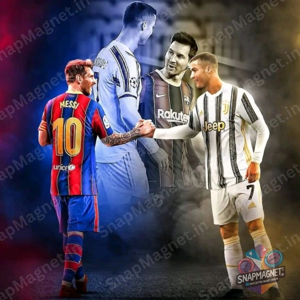 Bring home the ultimate football rivalry on a single frame! This custom photo fridge magnet features Lionel Messi and Cristiano Ronaldo together – perfect for football fans and collectors.