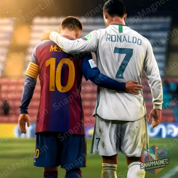 Bring home the ultimate football rivalry on a single frame! This custom photo fridge magnet features Lionel Messi and Cristiano Ronaldo together – perfect for football fans and collectors.