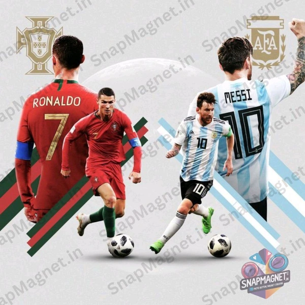Bring home the ultimate football rivalry on a single frame! This custom photo fridge magnet features Lionel Messi and Cristiano Ronaldo together – perfect for football fans and collectors.