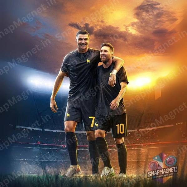 Bring home the ultimate football rivalry on a single frame! This custom photo fridge magnet features Lionel Messi and Cristiano Ronaldo together – perfect for football fans and collectors.